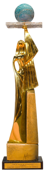 Dès son origine, la Coupe du Monde de la Pâtisserie se voit dotée d’un trophée faisait écho à la pâtisserie comme un symbole féminin. Le trophée – souvent appelé « la vierge » met en scène les 4 éléments :